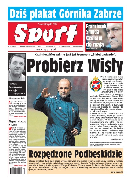 Kazimierz Moskal nie jest już trenerem Wisły Kraków; Agnieszka Radwańska wygrała w czwartek dwa mecze w Kuala Lumpur i w ćwierćfinale zmierzy się z Tajwanką Su-we Hsieh; Wisła Can Pack Kraków w turnieju finałowym Euroligi zagra w grupie B z Ros Casares Walencja, Spartakiem Moskwa Region oraz UMMC Jekaterynburg.