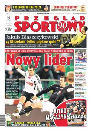 Nowy lider – Legia wykorzystała kolejne potknięcie Śląska, który zremisował wczoraj z Widzewem w Łodzi 2-2; Wisła Kraków pokonała Lechię 2-0; czy Perquis nie zagra na Euro – obrońca Sochaux złamał łokieć; Bjoergen ucieka Polce – Kowalczyk walczyła z pechem i bólem; „Strzelam tylko piękne gole” – Jakub Błaszczykowski o meczu z Mainz, który był ósmym z kolei zwycięskim meczem Borussii Dortmund; Tomasz Kuszczak nie mógł znieść, że szansa udziału w Euro uciekała mu sprzed nosa; Marcin Gortat z drużyną wciąż jest w grze o play-off; Henryk Szosta pobił rekord Polski w maratonie.