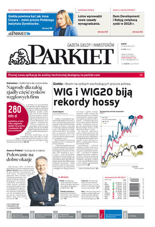 Gazeta Giełdy i Inwestorów Parkiet przyspiesza publikację e-wydania. Od poniedziałku, już od godz. 20.00, można kupić i przeczytać e-wydanie Parkietu, które w wersji papierowej ukaże się dopiero następnego dnia. Parkiet jest więc najświeższą gazetą finansową w Polsce.