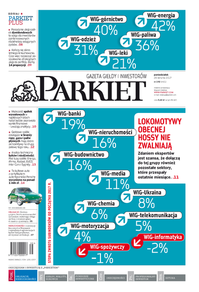 Największy w Polsce newsroom gospodarczy zbiera, analizuje i zgłębia dla Państwa najważniejsze informacje ze świata finansów. Codzienne wydanie „Parkietu”, sześć dni w tygodniu, to kilkadziesiąt artykułów o emitentach, instytucjach finansowych, gospodarce. To również opinie, felietony i wywiady z najważniejszymi ludźmi krajowej i globalnej finansjery.