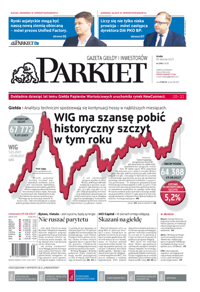 Największy w Polsce newsroom gospodarczy zbiera, analizuje i zgłębia dla Państwa najważniejsze informacje ze świata finansów. Codzienne wydanie „Parkietu”, sześć dni w tygodniu, to kilkadziesiąt artykułów o emitentach, instytucjach finansowych, gospodarce. To również opinie, felietony i wywiady z najważniejszymi ludźmi krajowej i globalnej finansjery.