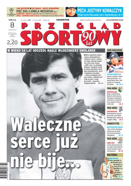 Waleczne serce już nie bije... – w wieku 54 lat odszedł nagle Włodzimierz Smolarek; pech Justyny Kowalczyk – w finale sprintu Polka upadła i była trzecia – wygrała Marit Bjoergen; pięć goli Lionela Messiego – Barcelona pokonała Bayer 7-1; Apoel pokonał Olympique Lyon 4-3; Kamil Stoch deklaruje, że powalczy o podium w klasyfikacji generalnej; piłkarz Legii Warszawa Miroslav Radović został ukarany finansowo za kopnięcie mikrofonu i zachowanie przy zmianie w meczu z ŁKS Łódź; Rafał Murawski, mimo niedawnej kontuzji, może zagrać już w piątek z Wisłą Kraków; Adam Wójcik pokonał wczoraj barierę 10 tysiecy punktów zdobytych w polskiej ekstraklasie.