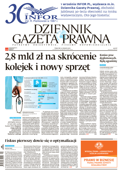 Gazetę wzbogacają praktyczne dodatki dla specjalistów, niedostępne w kioskach: Księgowość i Podatki, Rachunkowość i Audyt, Firma i Prawo, Samorząd i Administracja, Prawnik, Kadry i Płace, Ubezpieczenia i Świadczenia. NOWOŚĆ 2021 r. dodatki Biuro Rachunkowe i Księgowość Budżetowa (dostępne raz w miesiącu). Dodatkowo publikujemy wyjątkowo cenione przez Czytelników specjalne dodatki dotyczące najważniejszych zmian, nowych rozwiązań, na gorąco odpowiadamy na pytania. Piszemy o pracy zdalnej, o tarczach antykryzysowych, o nowych przepisach do walki z epidemią, o sposobach walki z zatorami płatniczymi i nowych obowiązkach pracodawców. Zapewniamy bezpieczeństwo w stosowaniu zmieniającego się prawa.