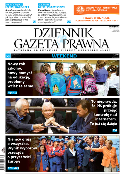 Gazetę wzbogacają praktyczne dodatki dla specjalistów, niedostępne w kioskach: Księgowość i Podatki, Rachunkowość i Audyt, Firma i Prawo, Samorząd i Administracja, Prawnik, Kadry i Płace, Ubezpieczenia i Świadczenia. NOWOŚĆ 2021 r. dodatki Biuro Rachunkowe i Księgowość Budżetowa (dostępne raz w miesiącu). Dodatkowo publikujemy wyjątkowo cenione przez Czytelników specjalne dodatki dotyczące najważniejszych zmian, nowych rozwiązań, na gorąco odpowiadamy na pytania. Piszemy o pracy zdalnej, o tarczach antykryzysowych, o nowych przepisach do walki z epidemią, o sposobach walki z zatorami płatniczymi i nowych obowiązkach pracodawców. Zapewniamy bezpieczeństwo w stosowaniu zmieniającego się prawa.