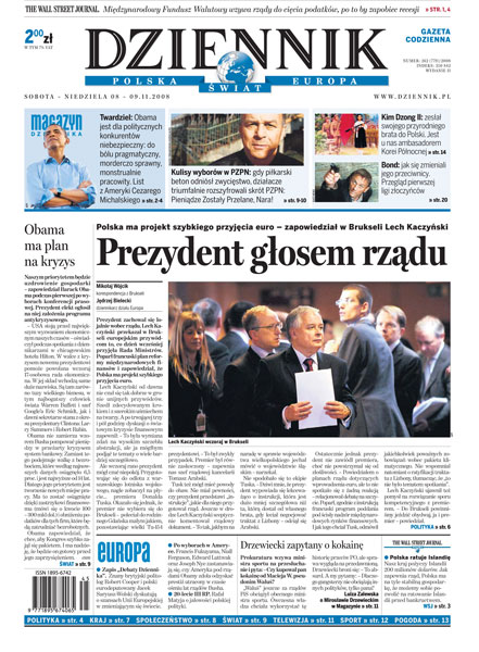 Polska pożyczy Islandii 200 milionów dolarów; Barack Obama jest dla politycznych konkurentów niebezpieczny: do bólu pragmatyczny, morderczo sprawny, monstrualnie pracowity; Polska ma projekt szybkiego przyjęcia euro – zapowiedział w Brukseli Lech Kaczyński; kulisy wyborów w PZPN; prezydent zmienia zdanie w sprawie emerytur pomostowych; przyrodni brat Kim Dzong Ila jest w Polsce ambasadorem Korei Północnej; znany brytyjski politolog Robert Cooper i polski eurodeputowany Jacek Saryusz-Wolski dyskutują o szansach Unii Europejskiej w zmieniającym się świecie; trzyminutowa walka i dramat Andrzeja Gołoty.