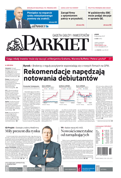 Największy w Polsce newsroom gospodarczy zbiera, analizuje i zgłębia dla Państwa najważniejsze informacje ze świata finansów. Codzienne wydanie „Parkietu”, sześć dni w tygodniu, to kilkadziesiąt artykułów o emitentach, instytucjach finansowych, gospodarce. To również opinie, felietony i wywiady z najważniejszymi ludźmi krajowej i globalnej finansjery.