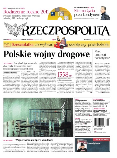 nowe przepisy o refundacji leków zmuszą setki tysięcy pacjentów do wykonania inwazyjnych badań; rozmowa z szefem Klubu PO; przyszły premier Słowacji chce zrezygnować z podatku liniowego, ograniczy prywatyzację i zmieni system emerytalny; śmierć 16 niewinnych cywilów znowu utrudni relacje Waszyngtonu z Kabulem; Mariusz Treliński przygotowuje „Latającego Holendra” Wagnera; Wojciech Szczęsny, bramkarz Arsenalu, o tym, jak Anglia zmienia Polaka; poradnik prawny dla rodziców.