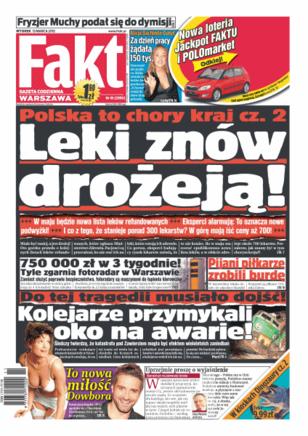 Polska to chory kraj, część druga – leki znów drożeją; 750 tysięcy złotych w trzy tygodnie, tyle zgarnia fotoradar w Warszawie – zamiast służyć poprawie bezpieczeństwa, fotoradary są maszynami do łupienia kierowców; pijani piłkarze Górnika Zabrze zrobili burdę w katowickim lokalu; kolejarze przymykali oko na awarie, do tej tragedii musiało dojść – śledczy twierdzą, że katastrofa pod Zawierciem mogła być efektem wieloletnich zaniedbań; Katarzyna Kępka to nowa miłość Macieja Dowbora; Alicja Bachleda-Curuś zażądała 150 tysięcy złotych za dzień pracy; fryzjer Joanny Muchy podał się do dymisji.
