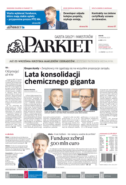 Największy w Polsce newsroom gospodarczy zbiera, analizuje i zgłębia dla Państwa najważniejsze informacje ze świata finansów. Codzienne wydanie „Parkietu”, sześć dni w tygodniu, to kilkadziesiąt artykułów o emitentach, instytucjach finansowych, gospodarce. To również opinie, felietony i wywiady z najważniejszymi ludźmi krajowej i globalnej finansjery.