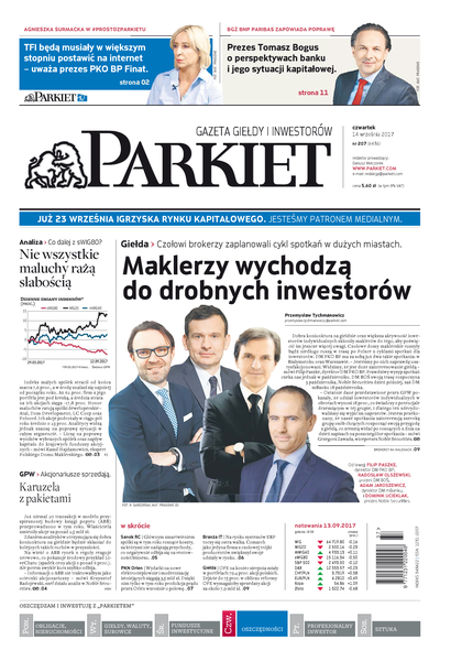 Największy w Polsce newsroom gospodarczy zbiera, analizuje i zgłębia dla Państwa najważniejsze informacje ze świata finansów. Codzienne wydanie „Parkietu”, sześć dni w tygodniu, to kilkadziesiąt artykułów o emitentach, instytucjach finansowych, gospodarce. To również opinie, felietony i wywiady z najważniejszymi ludźmi krajowej i globalnej finansjery.
