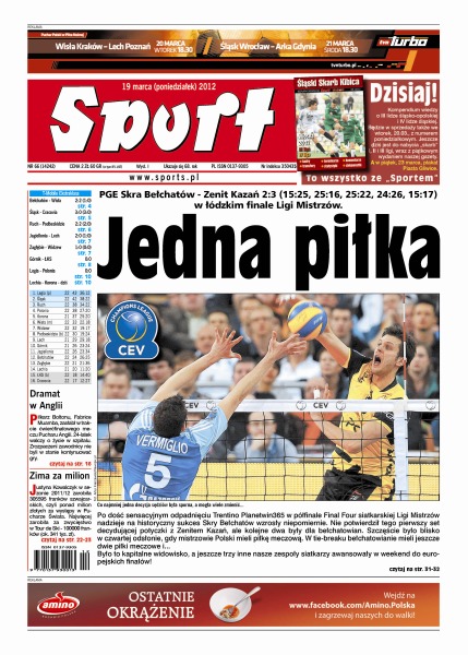 Piłkarz Boltonu – Fabrice Muamba – zasłabł podczas ćwierćfinałowego meczu Pucharu Anglii, teraz walczy o życie w szpitalu; PGE Skra Bełchatów przegrała z Zenitem Kazań w łódzkim finale Ligi Mistrzów w siatkówce; Norweg Anders Bardal został najlepszym skoczkiem sezonu 2011/12.