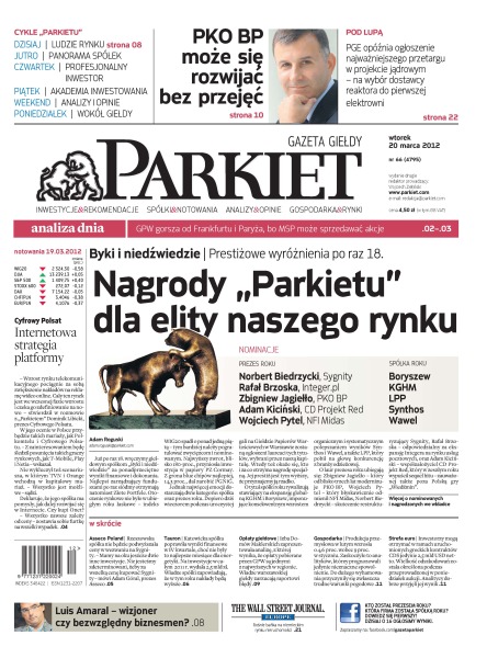 Największy w Polsce newsroom gospodarczy zbiera, analizuje i zgłębia dla Państwa najważniejsze informacje ze świata finansów. Codzienne wydanie „Parkietu”, sześć dni w tygodniu, to kilkadziesiąt artykułów o emitentach, instytucjach finansowych, gospodarce. To również opinie, felietony i wywiady z najważniejszymi ludźmi krajowej i globalnej finansjery.