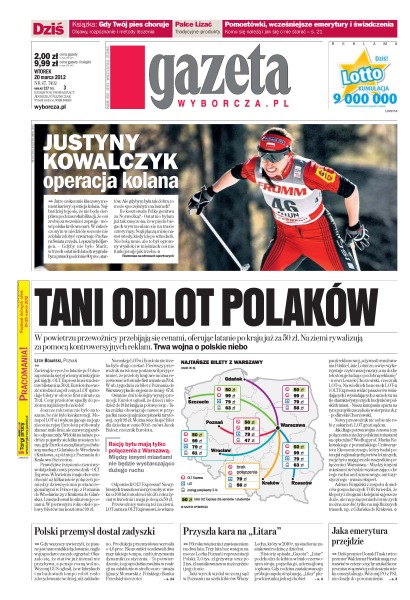 Ceny przelotów w Polsce spadły do poziomu najniższych na kolei; premier Donald Tusk i wicepremier Włodzimierz Pawlak mają dziś rozmawiać, by znaleźć kompromis w sprawie podniesienia wieku emerytalnego; w Tuluzie dochodzi do ataków na imigrantów; rząd w Londynie planuje oddanie autostrad i głównych dróg w leasing, bo nie stać go na ich utrzymanie; wydano listy Franza Kafki.