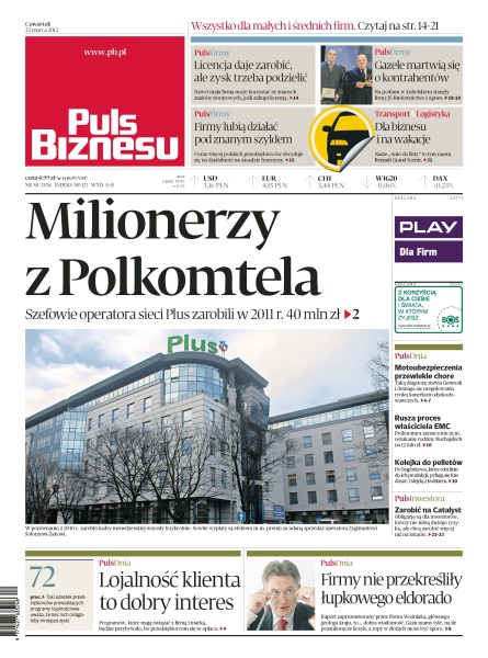 Nawet mała firma może korzystać ze znanych znaków towarowych, jeśli zakupi licencję; kadra kierownicza operatora Plusa zarobiła w zeszłym roku blisko 40 mln zł, trzy razy więcej niż w 2010 r.; Plus w tym roku zainwestuje w usługi na bazie LTE, T-Mobile pracuje na opinię sieci zaawansowanej technologicznie; amerykański fundusz Blackstone na potęgę kupuje centra handlowe w Polsce i będzie je ulepszał.