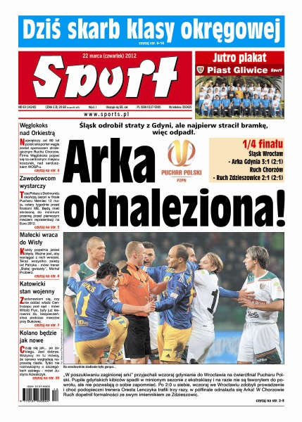Węglokoks został sponsorem strategicznym Ruchu Chorzów; mimo przegranej ze Śląskiem Wrocław Arka Gdynia znalazła się w półfinale Pucharu Polski; pół roku po porażce z Witalijem Kliczką Tomasz Adamek wraca na ring.