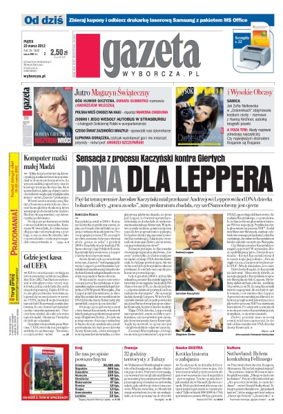 Pięć lat temu Jarosław Kaczyński miał przekazać Andrzejowi Lepperowi kod DNA dziecka bohaterki afery „praca za seks”, nim prokuratura zbadała, czy szef Samoobrony jest ojcem; w spisie powszechnym w 2011 r. 809 tys. osób zadeklarowało, że są narodowości śląskiej; nie żyje Mohammed Merah – zabójca z Tuluzy.