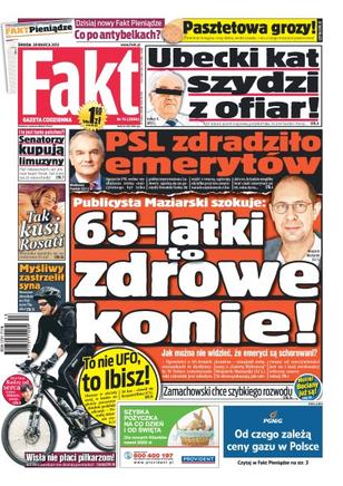 Sprzeciw PSL wobec wydłużenia wieku emerytalnego był tylko publicznym teatrem; senatorzy kupują limuzyny; na Dolnym Śląsku myśliwy zastrzelił syna; Bronisław Komorowski przyjedzie na Przystanek Woodstock.