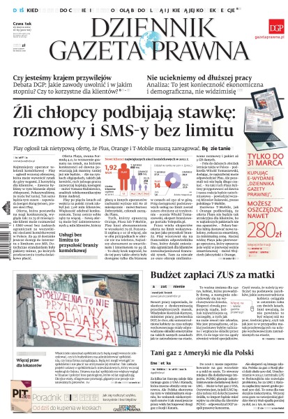 Play ogłosił ofertę, która postawiła na nogi konkurencję – 79 zł za nieograniczone rozmowy i SMS-y do wszystkich sieci w Polsce; samorządy coraz chętniej składają zbiorowe skargi i pozwy, tym razem w sprawie zagłębia węglowego; na paczkach papierosów nie będzie drastycznych zdjęć zniechęcających do palenia.