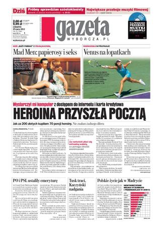 Jak za 200 zł kupić 70 porcji heroiny; Agnieszka Radwańska wygrała wczoraj w ćwierćfinale turnieju WTA w Miami z Venus Williams; PO i PSL ustaliły emeryturę; sprzęt ortopedyczny, do którego dopłaca NFZ, kosztuje o wiele więcej niż ten kupowany prywatnie; Gurkowie – słynący z waleczności górale z Himalajów, mogą stracić zatrudnienie w armiach Indii i Wielkiej Brytanii.