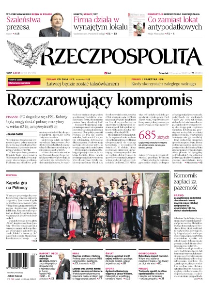 PO dogadała się z PSL, kobiety będą mogły dostać połowę emerytury w wieku 62 lat, a mężczyźni 65; atak na reformę nauczania historii w liceach przybiera na sile; atak Palikota na Millera oznacza, że obaj politycy zaczęli wojnę na wyniszczenie; lekarze alarmują, że kupowanie mleka kobiecego w internecie może być niebezpieczne dla niemowlaków.