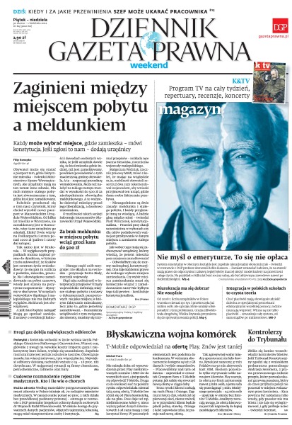 Dziennik Gazeta Prawna – codziennie obiektywne i rzetelne informacje z kraju i ze świata. Piszemy o tym, co dziś ważne i odpowiadamy na Wasze pytania – szczególnie te związane z obecnymi wyzwaniami tj. pandemia, praca zdalna. Na bieżąco wyjaśniamy zmieniające się przepisy. Wspieramy się wyjaśnieniami ministerstw i urzędów. Pomagamy unikać błędów i ostrzegamy, jakie są kary. Ponadto w każdy piątek specjalne magazynowe wydanie Dziennika Gazety Prawnej w całości z tekstami społeczno-ekonomicznymi.