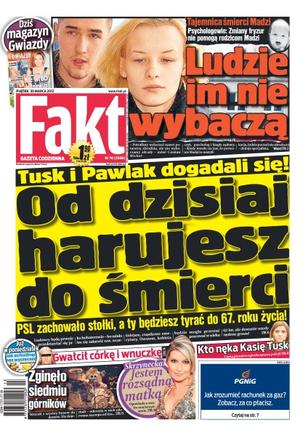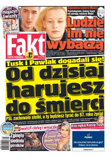Donald Tusk i Waldemar Pawlak ustalili częściowo podwyższony wiek emerytalny; w wypadku busa pod Mysłowicami zginęło 6 górników i kierowca, który ich wiózł; Katarzyna Skrzynecka pokazała swoją córkę.