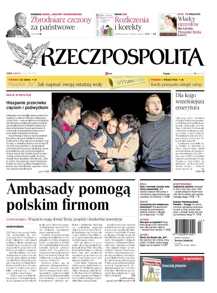 PiS oskarża władze Warszawy o utrudnianie przygotować uroczystości 10 kwietnia; 1200 wiernych ruszy dziś w 44-kilometrową drogę krzyżową, tak przeżywa Wielki Post coraz więcej osób; miliony Hiszpanów zademonstrowały wczoraj przeciwko reformie prawa pracy i cięciom budżetowym; liderzy Brazylii, Rosji, Indii; Chin i RPA krytykują Zachód i pracują nad alternatywą dla Banku Światowego.