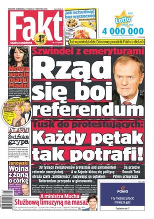 Fakt jest gazetą popularną, szybko wyczerpującą temat, niezależną. W jasny i prosty sposób opisuje wydarzenia i zjawiska społeczne. Przekazuje czytelnikom informacje z szerokiego spektrum zagadnień: od polityki po wydarzenia kulturalne i sport, w sposób pozbawiony sprawozdawczości, oparty na nieszablonowych pomysłach.