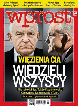 O więzieniach CIA w Polsce musieli wiedzieć wszyscy prezydenci i premierzy Rzeczypospolitej; rodziny załogi Tupolewa mają dość kłótni o Smoleńsk; Najsztub pyta Janusza Palikota; minister Jacek Rostowski dla ludowców jest złym policjantem – tym dobrym jest Donald Tusk; Agnieszka Radwańska lubi drogie drobiazgi za pieniądze z turniejów; Grycanki mają już więcej niż pięć minut w mediach; co piąty Polak jest freelancerem; zbliżają się wybory we Francji i w USA; badania nad ptasią grypą dają oręż terrorystom i szaleńcom; Hugh Grant – 51-letni chłopiec chce wydorośleć.