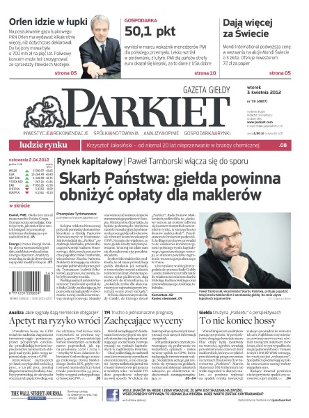 Paweł Tamborski, wiceminister Skarbu Państwa, włączył się do sporu o opłaty, które pobiera Giełda Papierów Wartościowych w Warszawie od maklerów; Orlen idzie w łupki – na poszukiwanie gazu łupkowego PKN Orlen ma wydawać kilkakrotnie więcej, niż dotychczas deklarował; wskaźnik menedżerów PMI wyniósł 50,1 punkta podwyższając wynik z lutego; Mondi International podwyższa cenę w wezwaniu na akcje Mondi Świecie o 3 złote; Około 600 mln zł może zarobić Polska Grupa Energetyczna sprzedając Exatel po tym, jak zmieniła w swoich księgach wycenę akcji telekomu obniżając ją o ponad 188 mln zł; prezes Energi chciałby, aby na warszawskiej giełdzie zadebiutowała zależna Energa-Operator; apetyt na ryzyko wróci – prawdziwa hossa na GPW wciąż nie nadeszła.