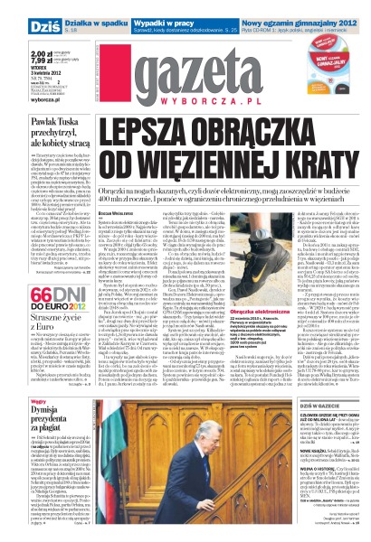 Lepsza obrączka od więziennej kraty – obrączki na nogach skazanych, czyli dozór elektroniczny, mogą zaoszczędzić w budżecie 400 mln zł rocznie – i pomóc w ograniczeniu chronicznego przeludnienia w więzieniach; działka w spadku; wypadki w pracy – sprawdź kiedy dostaniesz odszkodowanie; Pawlak Tuska przechytrzył, ale kobiety stracą; dymisja prezydenta Węgier za plagiat sprzed 20 lat; człowiek grzeje się przy ogniu już od miliona lat – dowodzą naukowcy; wojna o historię – czy licealiści będą się uczyli o ’56, lustracji i katastrofie w Smoleńsku.