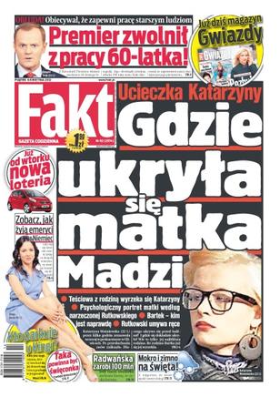 Ucieczka Katarzyny – gdzie ukryła się matka Madzi; teściowa z rodziną wyrzeka się Katarzyny; premier zwolnił z pracy 60-latka – obłuda, obiecywał, że zapewni pracę starszym ludziom; zobacz jak żyją emeryci z Niemiec; kto parkuje u Kingi Rusin – kim jest mężczyzna, który zna kod do jej domofonu i nocą parkuje w jej garażu; taka powinna być święconka – co włożyć do koszyczka; Agnieszka Radwańska zarobi 100 milionów złotych – jeśli nasza tenisistka zachowa formę, to zyska fortunę; mokro i zimno na święta, może spaść nawet śnieg.