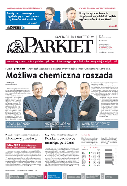 Największy w Polsce newsroom gospodarczy zbiera, analizuje i zgłębia dla Państwa najważniejsze informacje ze świata finansów. Codzienne wydanie „Parkietu”, sześć dni w tygodniu, to kilkadziesiąt artykułów o emitentach, instytucjach finansowych, gospodarce. To również opinie, felietony i wywiady z najważniejszymi ludźmi krajowej i globalnej finansjery.