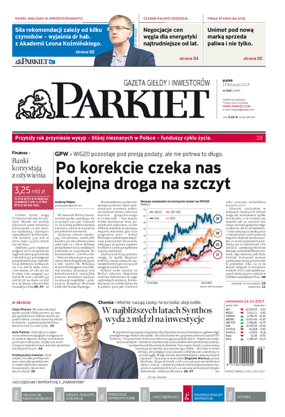 Największy w Polsce newsroom gospodarczy zbiera, analizuje i zgłębia dla Państwa najważniejsze informacje ze świata finansów. Codzienne wydanie „Parkietu”, sześć dni w tygodniu, to kilkadziesiąt artykułów o emitentach, instytucjach finansowych, gospodarce. To również opinie, felietony i wywiady z najważniejszymi ludźmi krajowej i globalnej finansjery.
