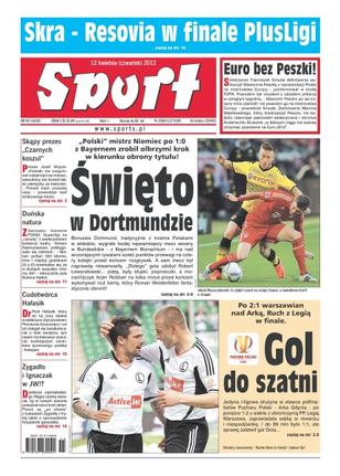 Święto w Dortmundzie – „Polski” mistrz Niemiec po 1-0 z Bayernem zrobił olbrzymi krok w kierunku obrony tytułu; Gol do szatni – po 2-1 warszawian nad Arką, Ruch z Legią w finale; Skra zmierzy się z Resovią w finale PlusLigi; skąpy prezes „Czarnych koszul” – prezes Józef Wojciechowski nie uregulował należności za marzec, zawodnicy nie dostali także pieniędzy za kwiecień; duńska natura – z dwunastu trenerów PGNiG Superligi na „naradę” z selekcjonerem kobiecej kadry, Kimem Rasmussenem, pofatygowało się czterech; doktor Piotr Hałasik, który do tej pory działał w siatkówce, ma kierować znacznie trudniejszym odcinkiem sportowego poletka – hokejem; działacze Jastrzębskiego Węgla czynią starania, by w nowym sezonie poważnie wzmocnić skład – ponoć są „po słowie” z Łukaszem Żygadłą i myślą także o sprowadzeniu Krzysztofa Ignaczaka; selekcjoner Franciszek Smuda definitywnie wykluczył Sławomira Peszkę z reprezentacji Polski na mistrzostwa Europy.