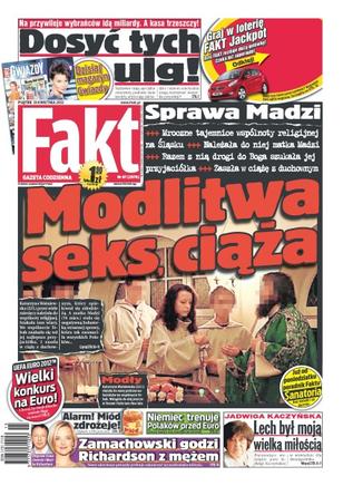 Modlitwa, seks, ciąża – mroczne tajemnice wspólnoty religijnej na Śląsku, do której należała matka Madzi – razem z nią drogi do Boga szukała jej przyjaciółka, która zaszła w ciążę z duchownym; alarm, miód zdrożeje nawet o 80 procent; Zbigniew Zamachowski godzi Monikę Richardson z mężem; Niemiec trenuje Polaków do Euro; „Lech był moją wielką miłością” – Jadwiga Kaczyńska; dosyć tych ulg – na przywileje idą miliardy, a kasa trzeszczy – sędziowie mają specjalne emerytury, posłowie tanie kredyty, artyści ulgi – jak budżet i system emerytalny mogą wytrzymać wszystkie przywileje.