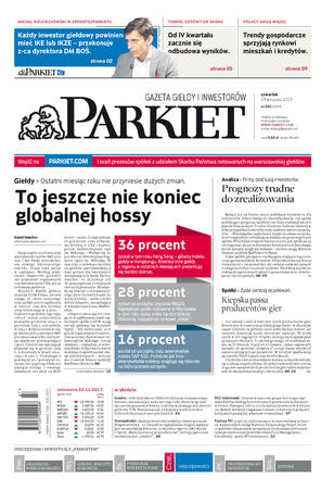 Największy w Polsce newsroom gospodarczy zbiera, analizuje i zgłębia dla Państwa najważniejsze informacje ze świata finansów. Codzienne wydanie „Parkietu”, sześć dni w tygodniu, to kilkadziesiąt artykułów o emitentach, instytucjach finansowych, gospodarce. To również opinie, felietony i wywiady z najważniejszymi ludźmi krajowej i globalnej finansjery.