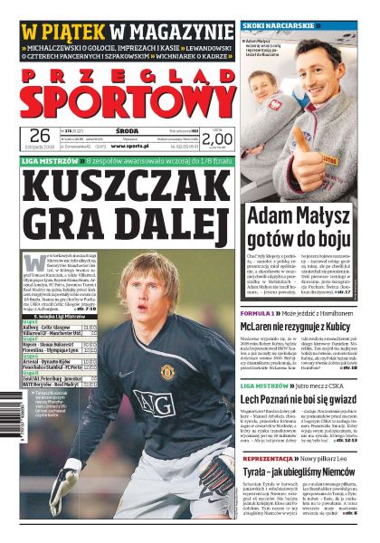 Arbiter to zawód coraz mniej poważany - wywiad ze Sławomirem Stempniewskim; co sprawiło, że Polonia Warszawa jest liderem; Sebastian Tyrała doczekał się wymarzonego powołania od Leo; Carlos Costly chce wyjechać z Polski; moskiewskie gwiazdy nie są w stanie przestraszyć piłkarzy Lecha; polska kadra skoczków mimo kłopotów z samolotem dotarła wczoraj do Kuusamo; Adam powinien celować w mistrzostwo świata - mówi Jens Weissflog; McLaren interesuje sie Kubicą; legenda piłki, Eusebio, odwiedził Polskę.