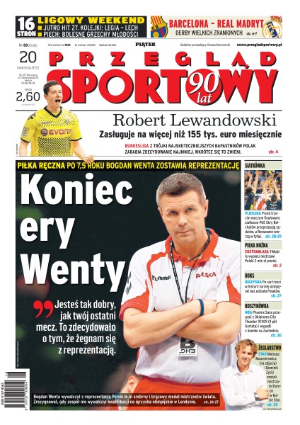 Bogdan Wenta zrezygnował z funkcji trenera reprezentacji piłkarzy ręcznych; T-Mobile wypłaci mistrzowi Polski 2 mln zł premii; siatkarze PGE Skry Bełchatów przepraszają za kibiców; Mateusz Kusznierewicz i Dominik Życki zostali żeglarskimi mistrzami Europy w klasie Star.