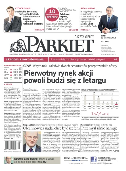 Największy w Polsce newsroom gospodarczy zbiera, analizuje i zgłębia dla Państwa najważniejsze informacje ze świata finansów. Codzienne wydanie „Parkietu”, sześć dni w tygodniu, to kilkadziesiąt artykułów o emitentach, instytucjach finansowych, gospodarce. To również opinie, felietony i wywiady z najważniejszymi ludźmi krajowej i globalnej finansjery.