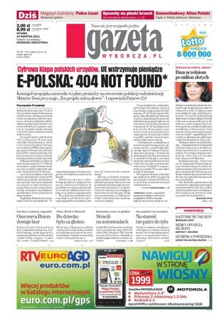 Komisja Europejska zamroziła wypłatę pieniędzy na stworzenie polskiej e-administracji; 120 osób z krakowskiej PO przeszło do Ruchu Palikota; uzależniony od gier ojciec-student pobił płaczącego niemowlaka, ponieważ ten rozpraszał go podczas gry na komputerze; UE na rok zawiesiła sankcje wobec Birmy.
