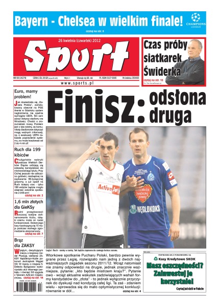 Bayern i Chelsea w finale Ligi Mistrzów; zainstalowany obecnie na PGE Arena w Gdańsku system nagłośnienia nie spełnia wymogów UEFA; radni przegłosowali wczoraj kolejne dofinansowanie GKS Katowice, dzięki czemu może on nadal funkcjonować.