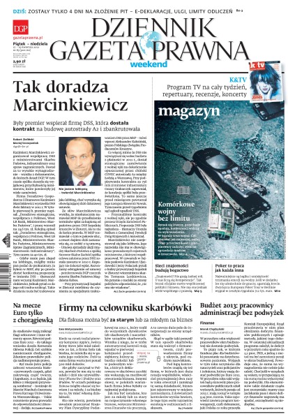 Dodatki: Gazeta Prawna, Zarządzanie Finansami, Magazyn, Kultura TV, Forum Biznesu, Edukacja Warszawa, Flexicurity.