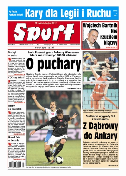 Lech Poznań gra z Polonią Warszawa – mecz ma zobaczyć 3000 widzów; w Madrycie wciąż nie mogą uwierzyć, że Realu zabraknie w finale Ligi Mistrzów; Gerard Cieślik, legendarny piłkarz Ruchu Chorzów i reprzentacji Polski kończy 85 lat.