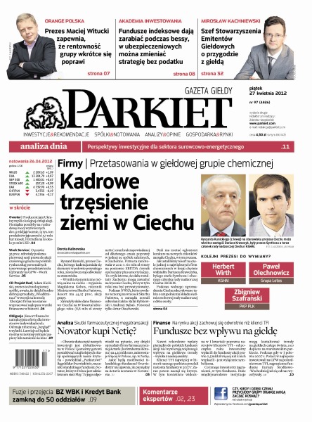 Największy w Polsce newsroom gospodarczy zbiera, analizuje i zgłębia dla Państwa najważniejsze informacje ze świata finansów. Codzienne wydanie „Parkietu”, sześć dni w tygodniu, to kilkadziesiąt artykułów o emitentach, instytucjach finansowych, gospodarce. To również opinie, felietony i wywiady z najważniejszymi ludźmi krajowej i globalnej finansjery.