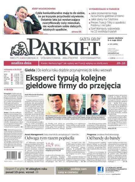 Eksperci typują kolejne giełdowe firmy do przejęcia; spółki energetyczne górą w sporach z URE; ceny mieszkań nie będą już spadać; PBG naruszyło bankowy warunek; czy euro podbije nam ceny w czerwcu; polskie firmy informatyczne sprzedały w 2011 roku o ponad 10 proc. więcej towarów i usług za granicę niż rok wcześniej; czy zmiana warty we Francji przekształci Europę; klienci firm zarządzających aktywami na zlecenie mogą być zadowoleni – wyniki osiągane w segmencie akcyjnym były najlepsze od II połowy 2010 r., lepsze niż wynikałoby ze wzrostu indeksu WIG20; czy wzrost niepewności na rynkach jest szansą dla naszego parkietu; jak bardzo szkodzą długie weekendy.