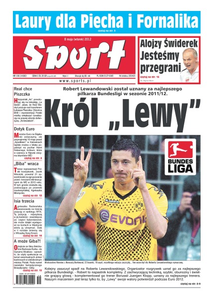 Król „Lewy” – Robert Lewandowski został uznany za najlepszego piłkarza Bundesligi w sezonie 2011/12; laury dla Piecha i Fornalika; „Jesteśmy przegrani” – Alojzy Świderek; Real chce Piszczka – Hiszpański „As”, powołując się na telewizję „La Sexta”, pisze, że Real Madryt pracuje nad transferem Łukasza Piszczka; „Biba” wraca – Trener reprezentacji Polski