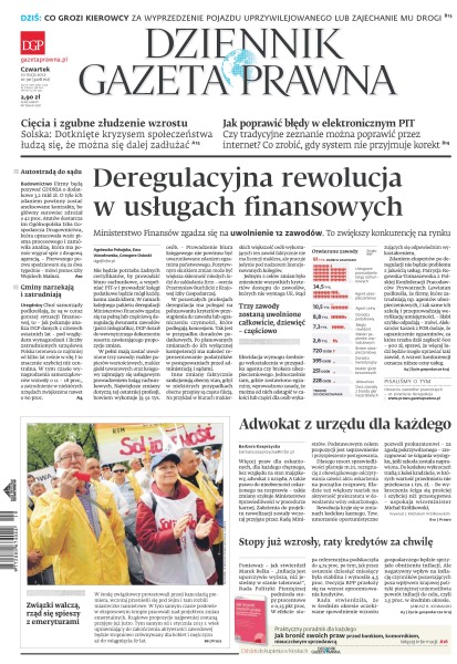 Dziennik Gazeta Prawna – codziennie obiektywne i rzetelne informacje z kraju i ze świata. Piszemy o tym, co dziś ważne i odpowiadamy na Wasze pytania – szczególnie te związane z obecnymi wyzwaniami tj. pandemia, praca zdalna. Na bieżąco wyjaśniamy zmieniające się przepisy. Wspieramy się wyjaśnieniami ministerstw i urzędów. Pomagamy unikać błędów i ostrzegamy, jakie są kary. Ponadto w każdy piątek specjalne magazynowe wydanie Dziennika Gazety Prawnej w całości z tekstami społeczno-ekonomicznymi.