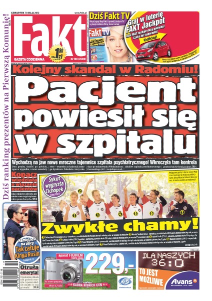 Pacjent powiesił się w szpitalu – kolejny skandal w Radomiu – wychodzą na jaw nowe mroczne tajemnice szpitala psychiatrycznego, wkroczyła tam kontrola; zwykłe chamy – jak zachowują się gwiazdy; Sykut wygryzła Cichopek; namiętność na ulicy – zobacz jak całuje Kinga Rusin; otruła emeryta – opiekunka płakała nad grobem emeryta – potem śledczy ustalili, że to ona go otruła; minister Kopacz wiedziała o wiązaniu pacjentów; Olga Bołądź opowiada jak wiele kosztowała ją rola Agaty Mróz; Franciszek Smuda zabrał pół kadry na wakacje.