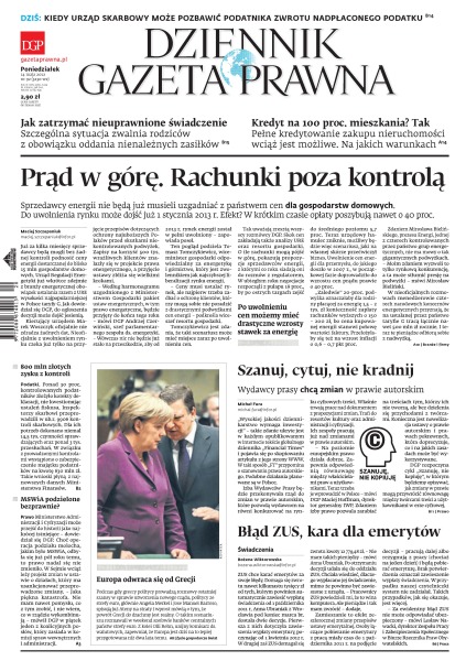 Sprzedawcy energii nie będą już musieli uzgadniać z państwem cen dla gospodarstw domowych; wydawcy prasy chcą zmian w prawie autorskim; jak zatrzymać nieuprawnione świadczenie; sposób podziału MSWiA stanowi zagrożenie dla Polaków; w przyszłym roku możemy liczyć na to, że Komisja Europejska zdejmie z Polski procedurę nadmiernego deficytu.